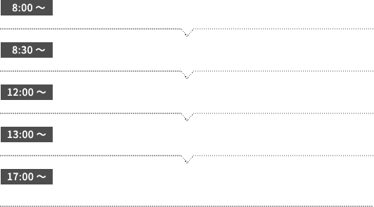 | 休日 | 日曜 年末年始 GW 夏季 有給 ※土曜・祝日は現場による |
